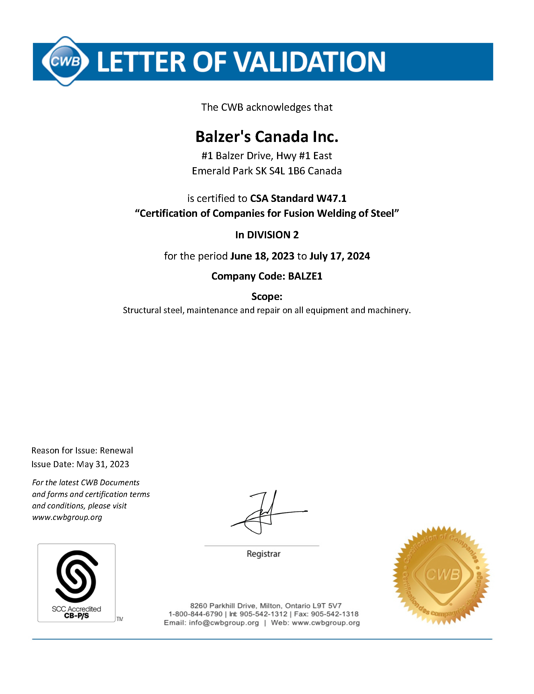 The records below reflect current certifications and licenses maintained by BCI. Document previews are provided for visual confirmation. Full documents are available through the source image.